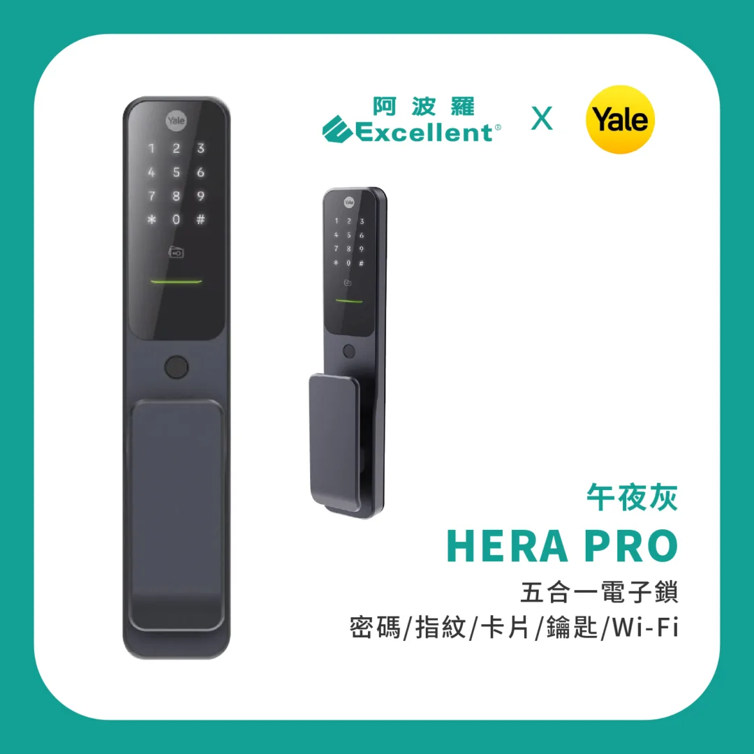 【Yale耶魯】Hera Pro 輕薄推拉智能鎖/電子鎖-午夜灰(指紋│卡片│密碼│藍芽│Wifi│鑰匙)
