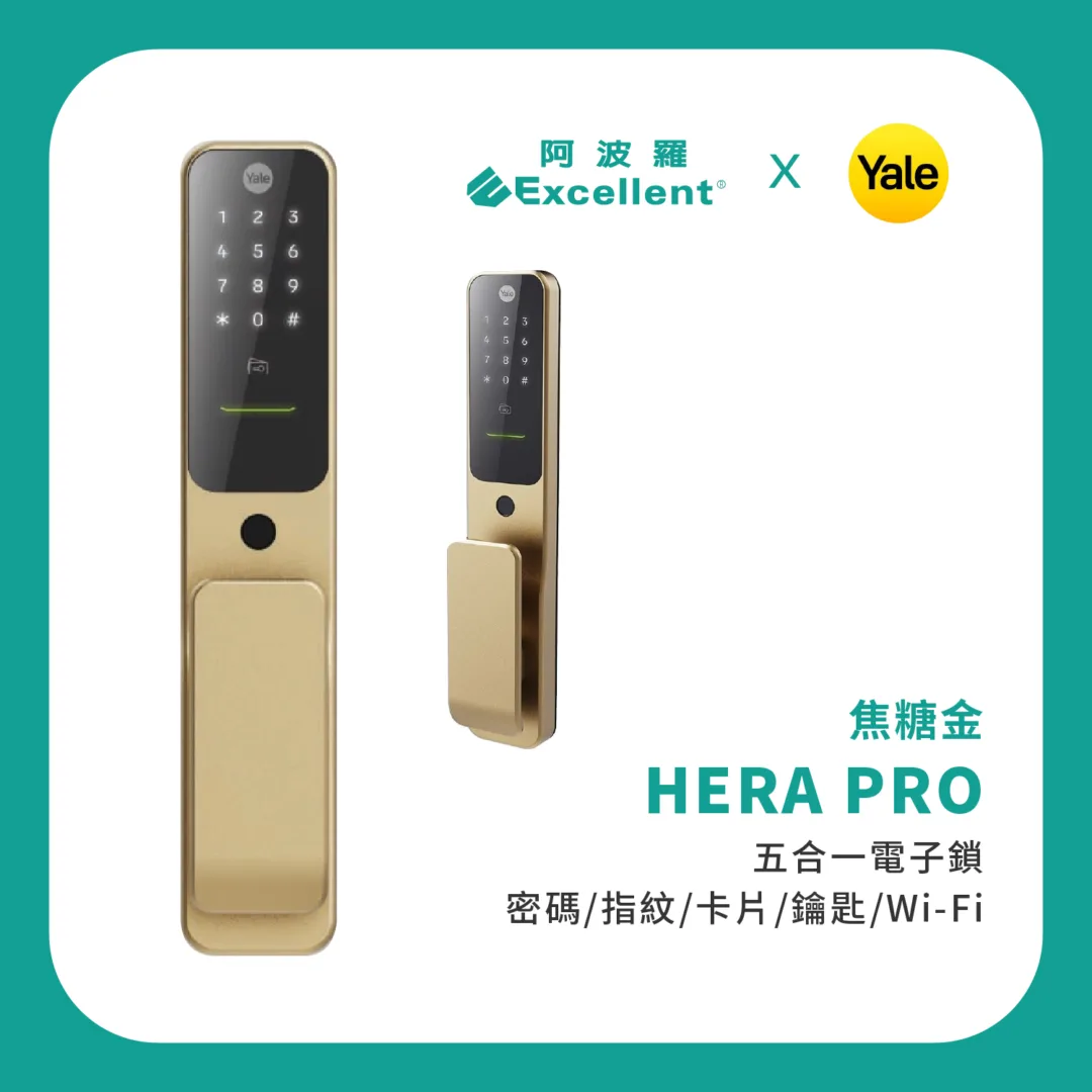 【Yale耶魯】Hera Pro 輕薄推拉智能鎖/電子鎖-焦糖金(指紋│卡片│密碼│藍芽│Wifi│鑰匙)