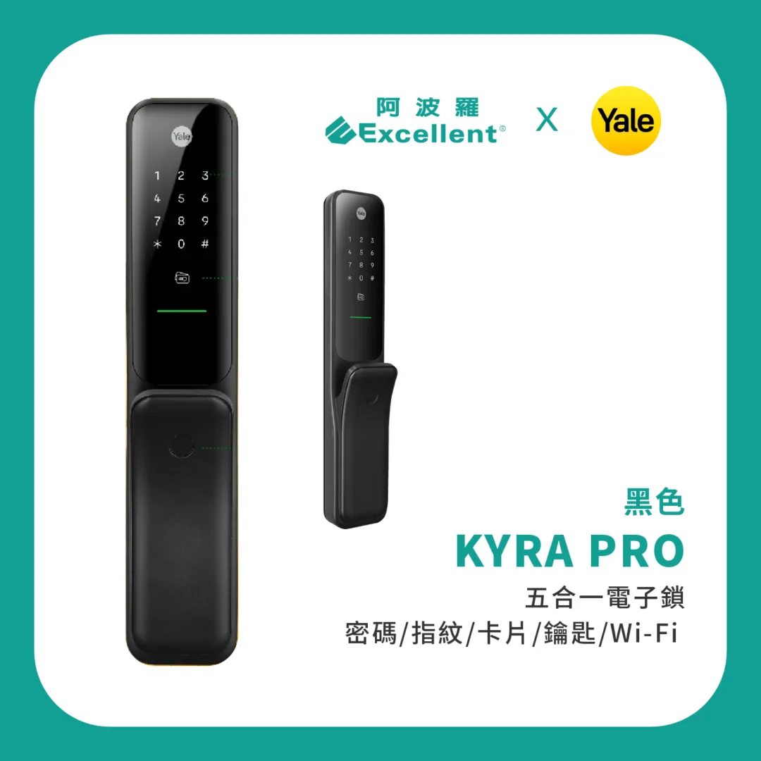 【Yale耶魯】Kyra Pro 纖薄推拉智能鎖/電子鎖-時尚黑(指紋│卡片│密碼│藍芽│Wifi│鑰匙)