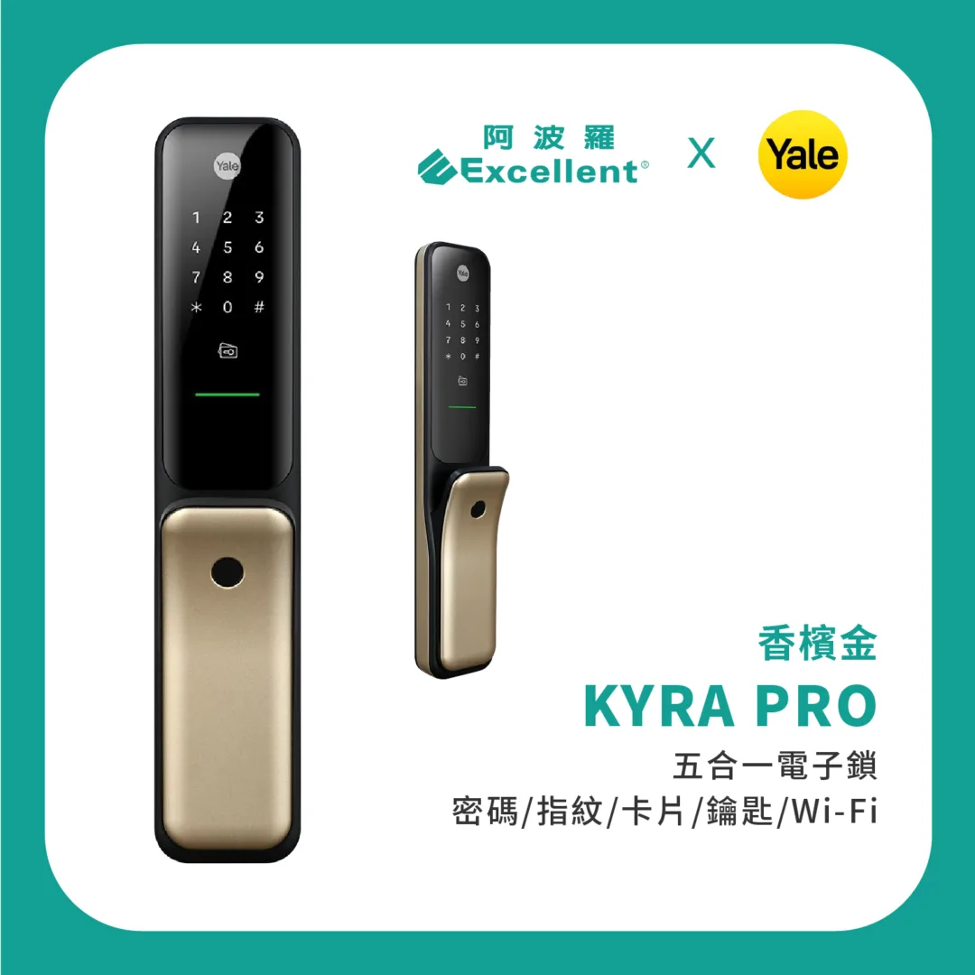 【Yale耶魯】Kyra Pro 纖薄推拉智能鎖/電子鎖-香檳金(指紋│卡片│密碼│藍芽│Wifi│鑰匙)